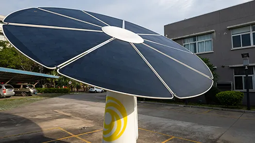Ähnlich wie eine echte Blume richtet sich die ECOPLANT nach der Sonne aus und passt sich den ganzen Tag über automatisch an die Position der Sonne an. Sie beginnt fast sofort, erneuerbare Energie zu produzieren, die durch monokristalline Solarzellen effizient aufgeladen wird.