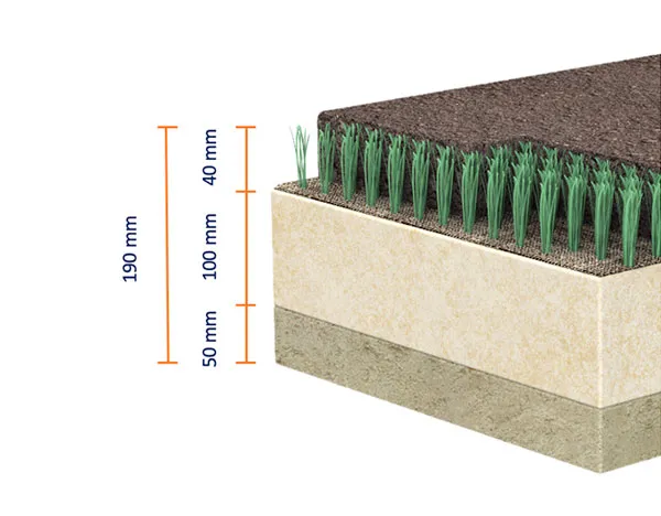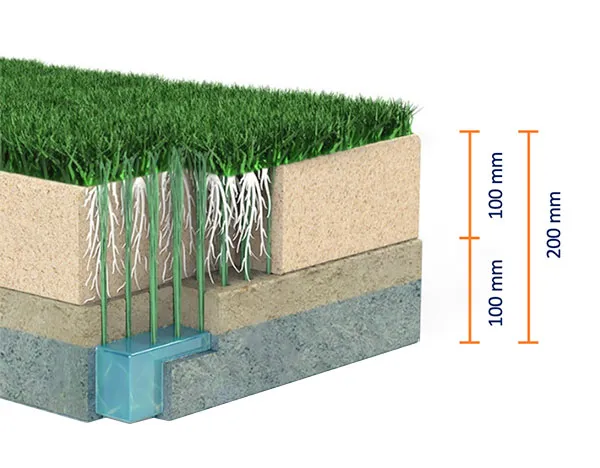 - Die Hydrorock-Schicht fungiert auch als Wachstumsmedium, das im Falle von Naturrasen das Wurzelwachstum stärkt und zu einer echten Verstärkung des Naturrasens führt.