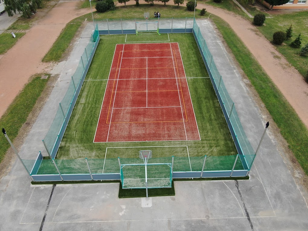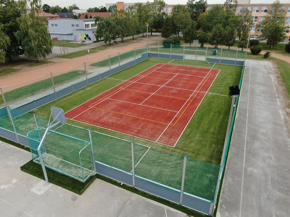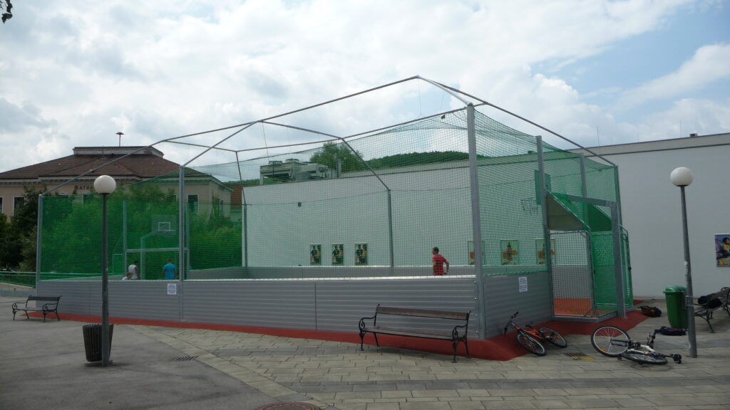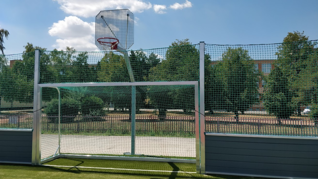 All-metal structure with special anti-corrosive treatment The set consists od two goals and two basketball tables. The playing surface can be whatever you choose: TEXPLAY, Patmos modular tiles or artificial turf with or without shock pad.