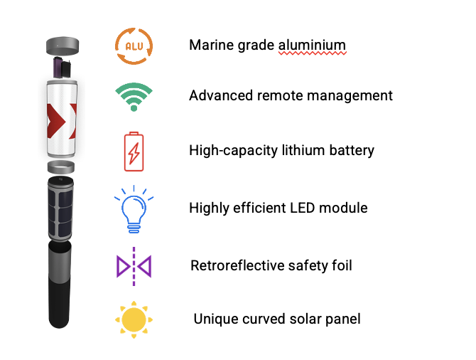 - Patented cylindrical solar panels The round shape allows for an orientation-independent installation and to catch sunlight from all directions